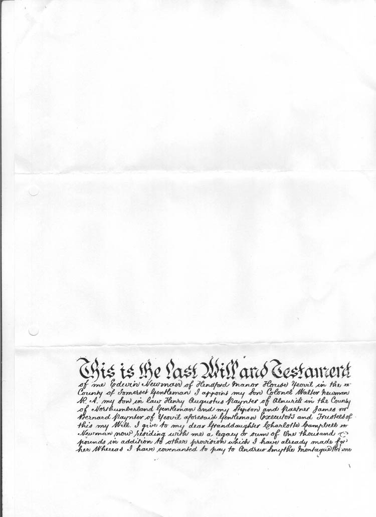 This is the last will and testament of me, Edwin Newman of Hendford Manor House, Yeovil, in the county of Somerset, Gentleman.