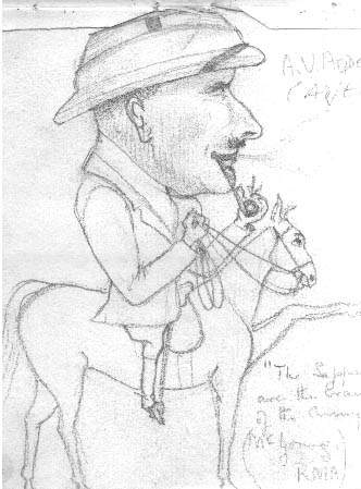In March 1925, he wrote a letter to his mother describing some of the people that he worked with and his caricatures of them which he had had printed into a booklet. I don't have the printed book, but have copied the illustrations directly from his original sketch book. The caricatures are displayed below the letter - there is an extra one of Basil Boulden who is not mentioned in the letter. A caricature of himself is also included (also not mentioned in the letter). As a child, I knew five of the people illustrated and apart from Jack Steeman, I can recognise all of them from their caricatures. Indeed two of them (Jack Steedman and Maurice Jeakes) were my godfathers, and Dick Richards was my uncle (my mother's half-brother).