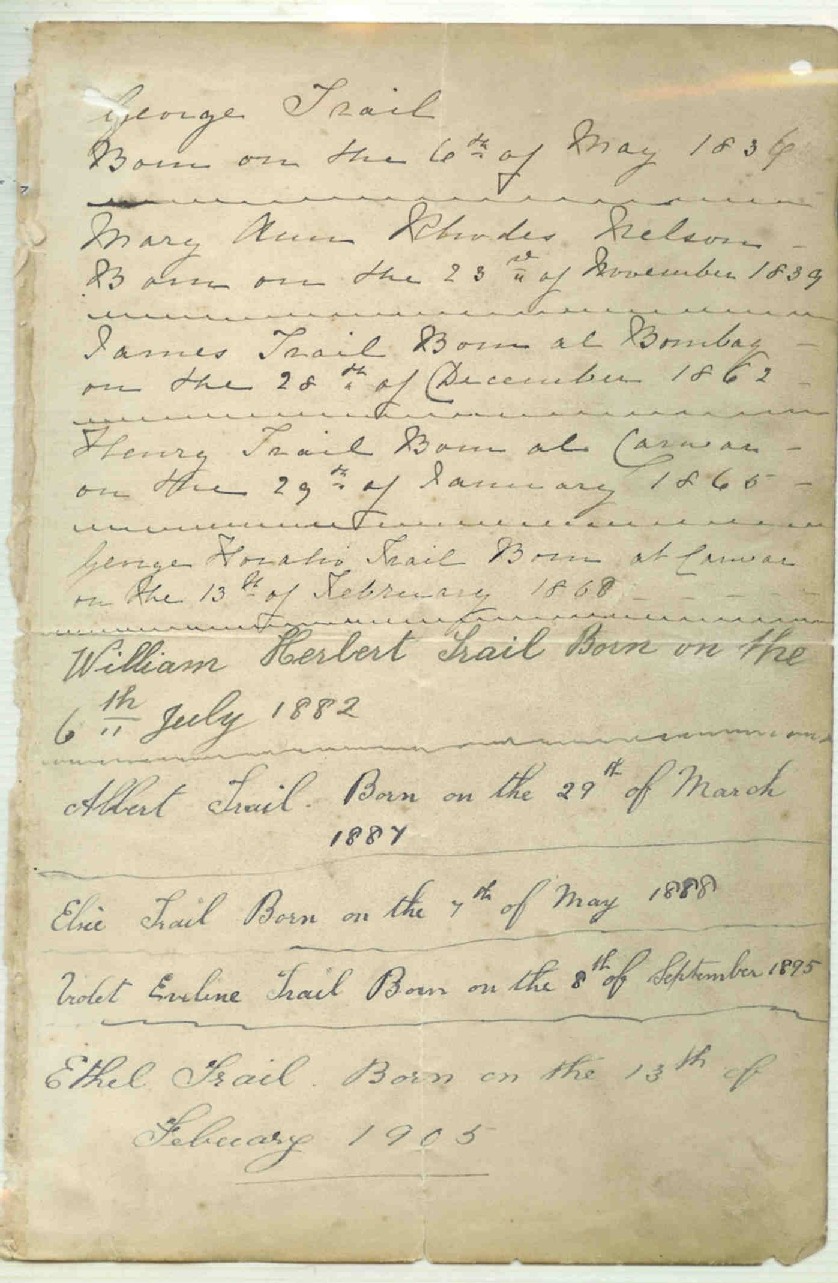 Below is a scan of a page from George Trail's bible, as referred to in his g-g-granddaughter
